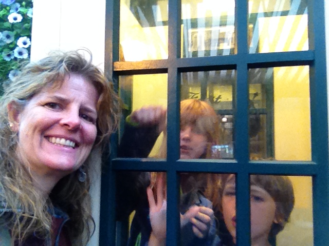 We went to the Brazen Head for a special event - an expert in Irish folk tales told several of them over the course of a dinner, complete with performances of traditional Irish songs. The attendees (tourists) were from all over, including Australia and South Africa. And while we were waiting for the folk talk event to start, Alison discovered an old phone booth in the bar area that was perfect for child containment.