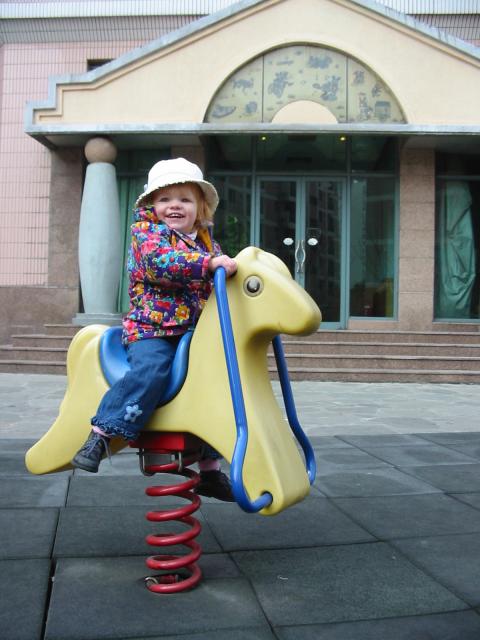 The main reason we chose Golden Bridge Garden (Jin Qiao Yuan) over the other two places we looked at was it had a playground. Not pictured: the slide, the open it/close it mini-door, and the baby steps.