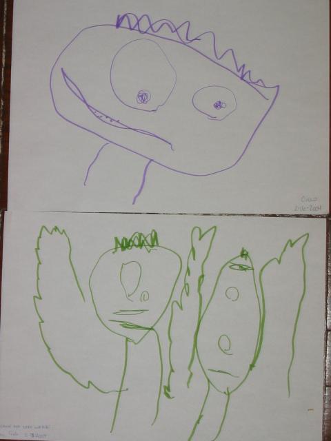 Cielo has really been working on her drawing skills. Here is a picture she drew competely on her own of Ernie, and another one of Ernie and Bert (you can see by their raised arms that they are waving).