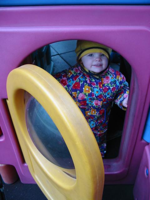We still spend a lot of time at the playground. Here's Cielo at the famous open-it/close-it door.