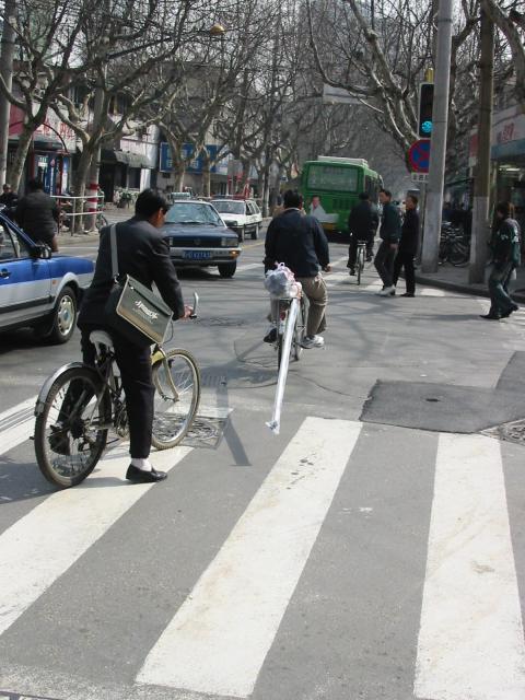 This is the intersection of Jiang Su Lu and Dong Zhu An Bang Lu (our nearest major intersection). Vernon's commute was five minutes shorter when this light was green.