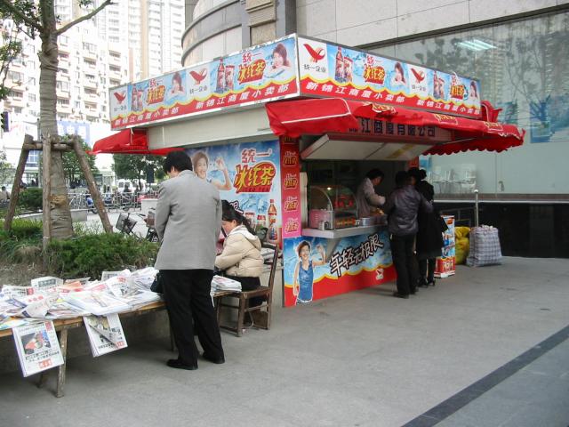 This is a little newsstand outside Synopsys' building. Vernon bought many bottles of water (ping shui) here to avoid drinking the cooler water inside.