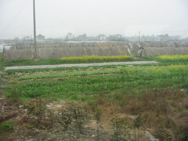 Out the window of the train we saw many farms. Some were tiny plots in the ground next to the train tracks, and some were large collections of greenhouses. Most of the greenhouses were covered in plastic, but some were covered in turf.