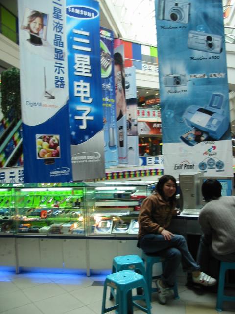 And this is a shot inside Cybermart. It's a four-story atrium-style shopping mall that is packed with stores that sell PCs and accessories, cameras, mp3 players, etc. We wish they had stuff this cool in the U.S. In general, the selection of models and brands for consumer items is much greater here.