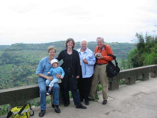 I think you know who all these people are by now. This is near Baodingshan, towards the parking lot. I wonder if Aerostich would publish this picture in their catalog (that's one of their motorcycle courier bags, filled with diapers, sitting on the ground).
