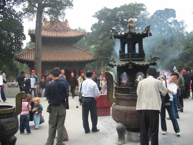 Domestic tourists come to visit Qu Fu and burn incense to Confucius, who didn't want his philosophy to be treated like a religion, but those are the breaks. A key point of his philosophy, to the best of our understanding, was that whatever your role in feudal Chinese society, you should be happy with it. Very convenient if you're a feudal Chinese ruler.