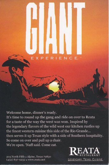 Finally we got to Alpine. Alpine is the location of one of the two Reata Restaurants in Texas. The other is in Fort Worth, but this is the original. It had some wonderful food, including a jalapeno-cilantro cheddar soup, the jalapeno grits you see in this picture, and a tortilla soup that Cielo liked so much she declared "I want to live in Texas!"